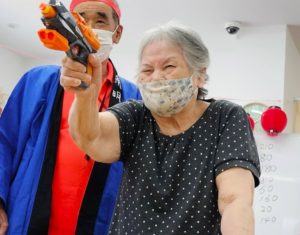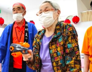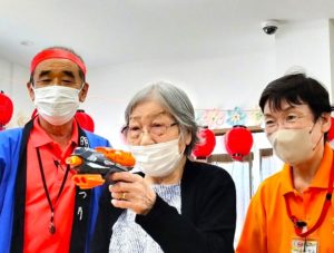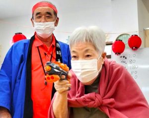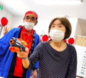 気を取り直してこの日のゲームはお祭り屋台風に射的ゲームをしました![]()