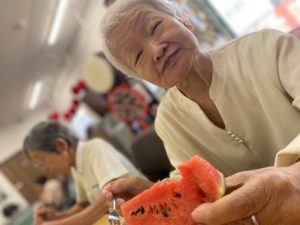 真剣に勝負の後はまったりと冷たいスイカで小休憩![]()