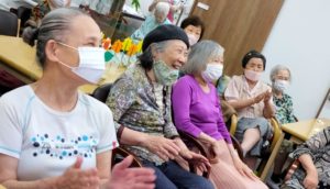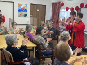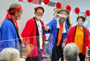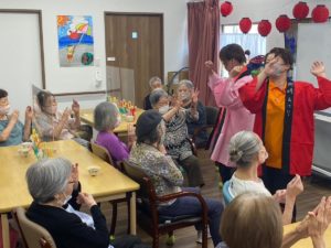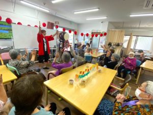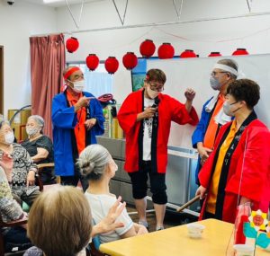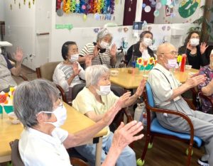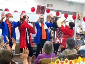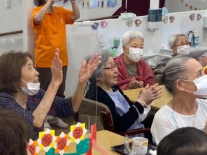 椅子に座ったままでの盆踊り体操ですが炭坑節とか皆さんちゃんとできるのがすごいですね![]()