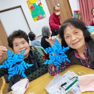 横に彩りを飾る 氷のオーナメントは利用者様一人一人に作っていただきました![]()