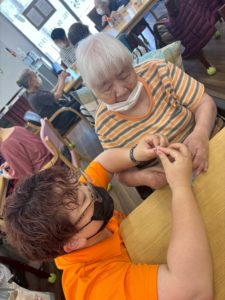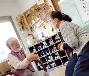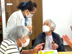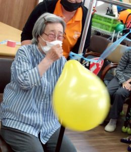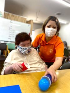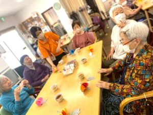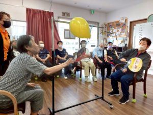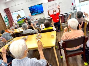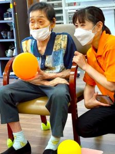 めいめいのレクは運動機能のリハビリはもちろんの事、利用者同士の交流を促進するように意識しています