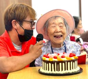 だからお誕生日をお祝いするときは全員で心を込めておめでとうって言ってもらえるので皆さんお誕生日会の時はとっても嬉しそうですね長生きもいいもんです
