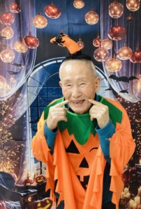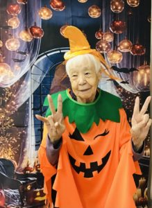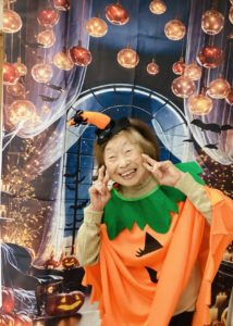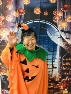10月末にはハロウィンの仮装パーティー バックもきれいにして記念写真を撮ってもらいました。
