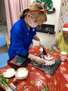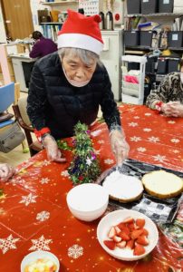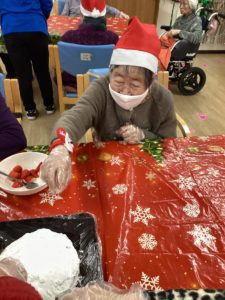 おやつタイムではみんなでクリスマスケーキを作りましたよ