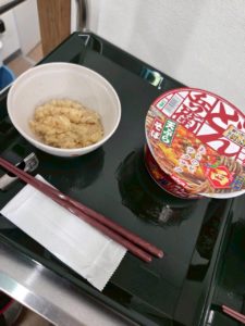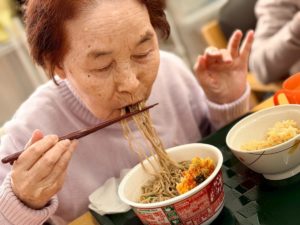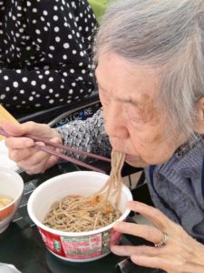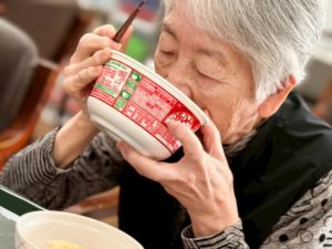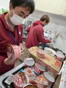 ということで 普段あまりインスタントを召し上がられない方もいることからみなさんどんな反応になるかなと思いながらも大鍋でそばを湯がいて薬味を足して かやくご飯と一緒に提供したら…