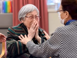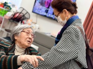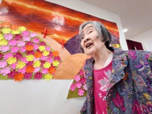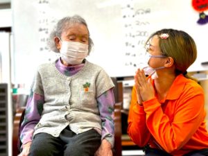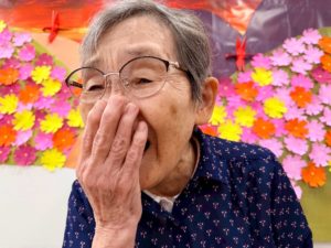 いつものごとく 動画で家族さんにメッセージを撮影して、最後になかなか会えなくなっていたお母さん(実母101才)にひと言『おかあさーん元気にしてるー』のタイミングで…