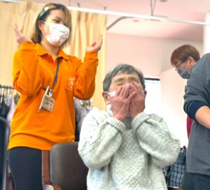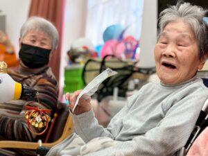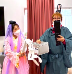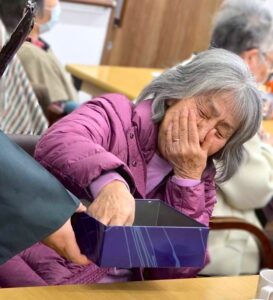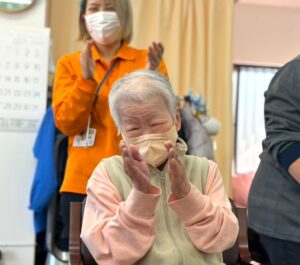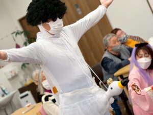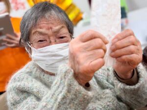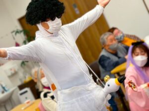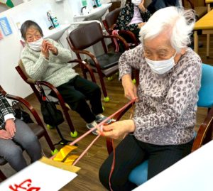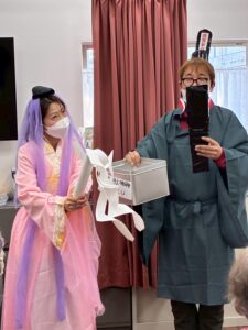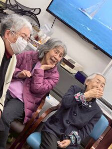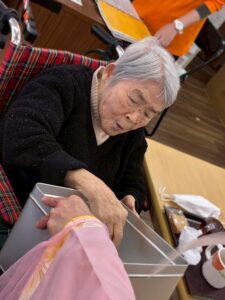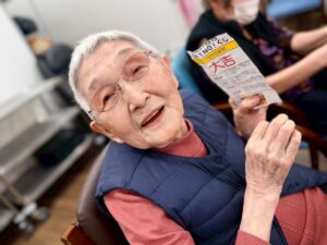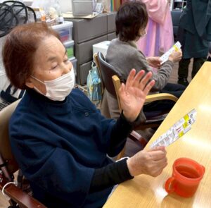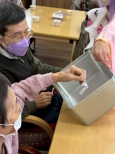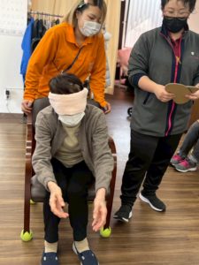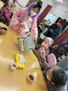 さらに目隠しをして顔のパーツを投げて顔を作る福笑いも横で見ている方々も大変盛り上がりました![]()